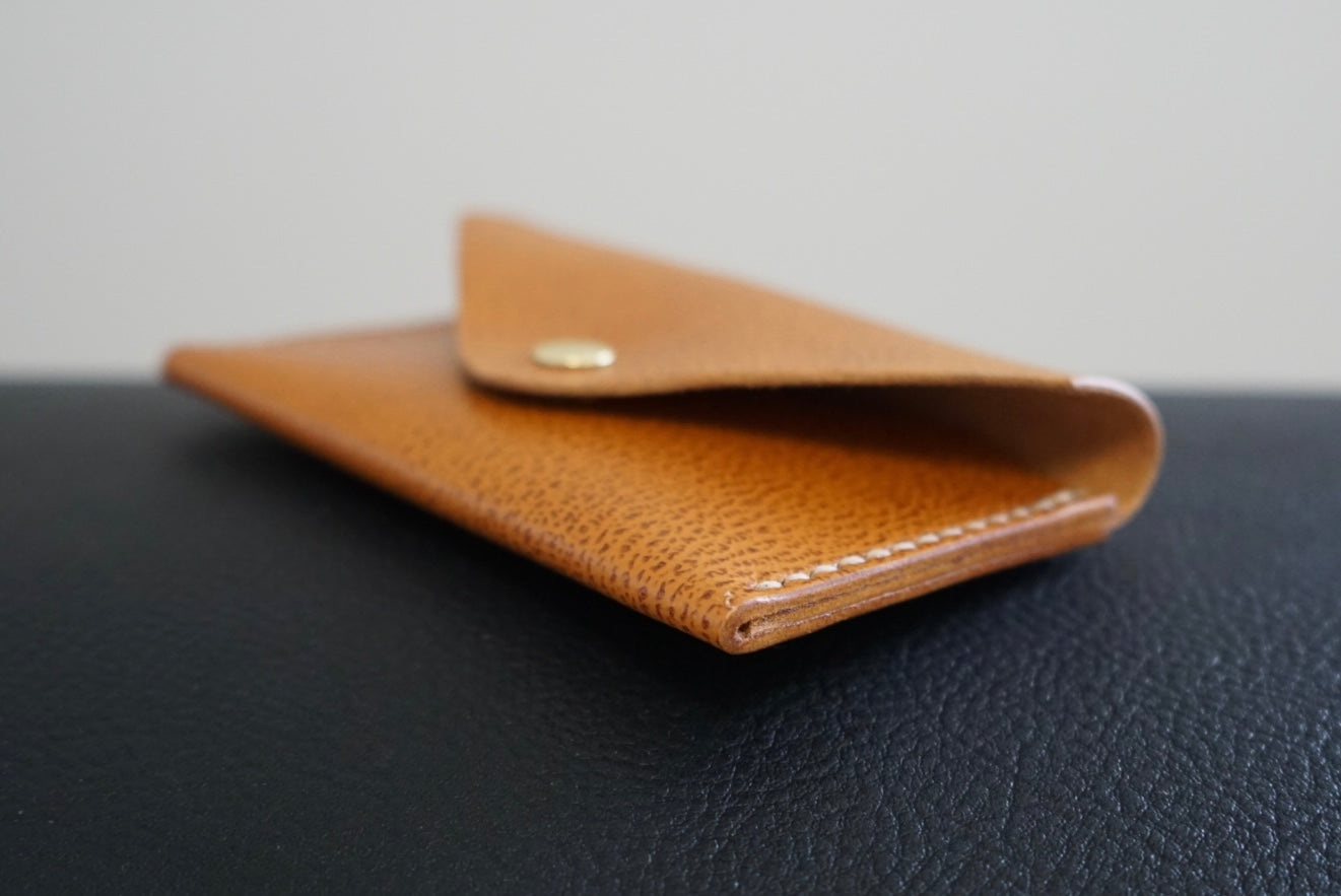 A compact wallet designed to hold your essentials while maintaining a slim profile. These full grain leather wallets feature a back pocket as well as a main pocket with a snap closure.