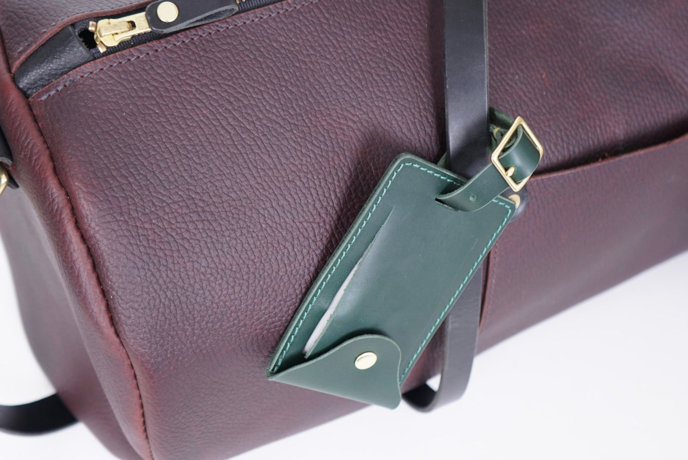 - 4”x3” tag made with full grain leather