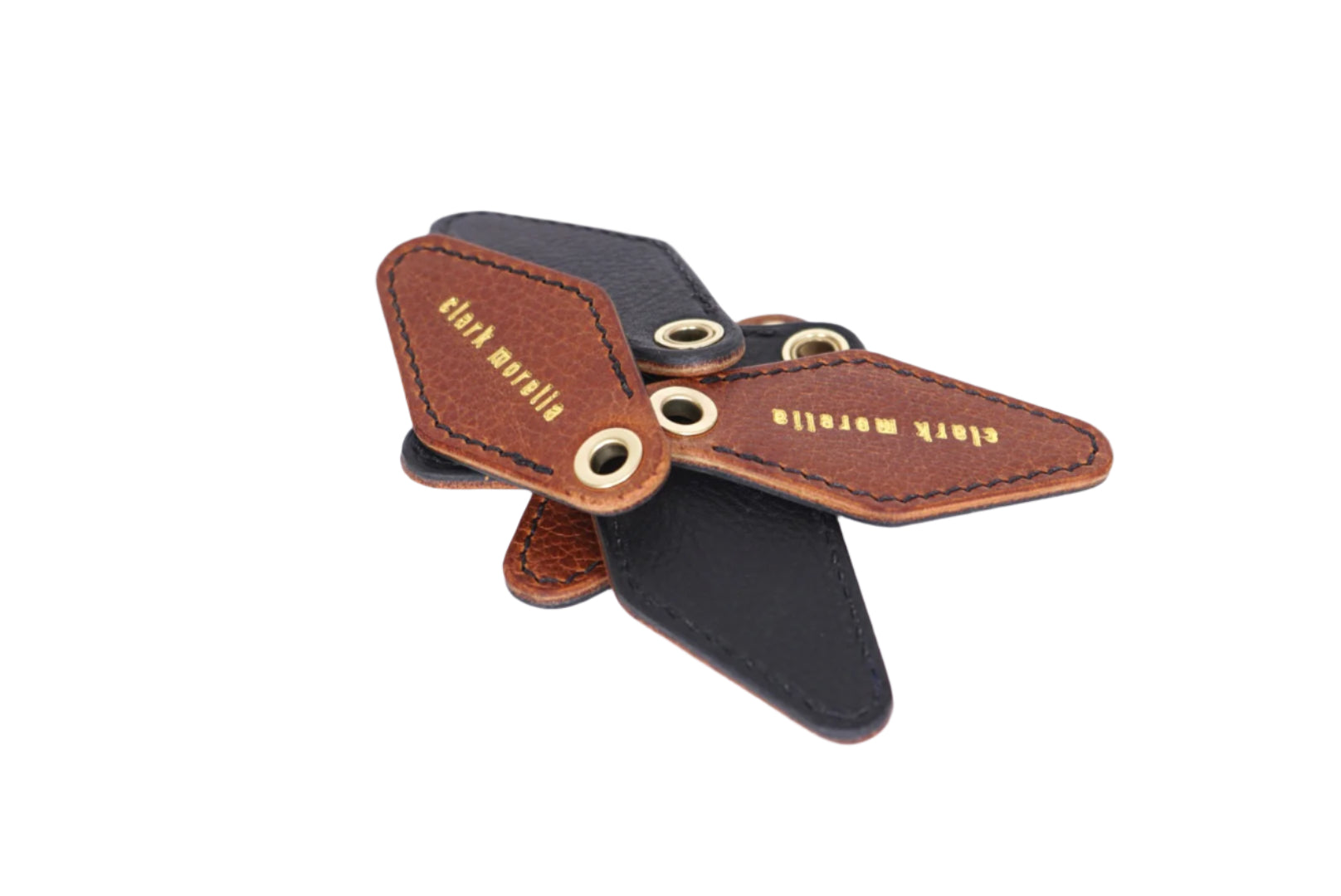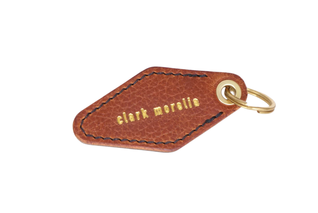 A small "motel style" keychain made from a black and brown pebbled leather tanned at Horween in Chicago. Measures 3" x 1.5" and come with a brass key ring