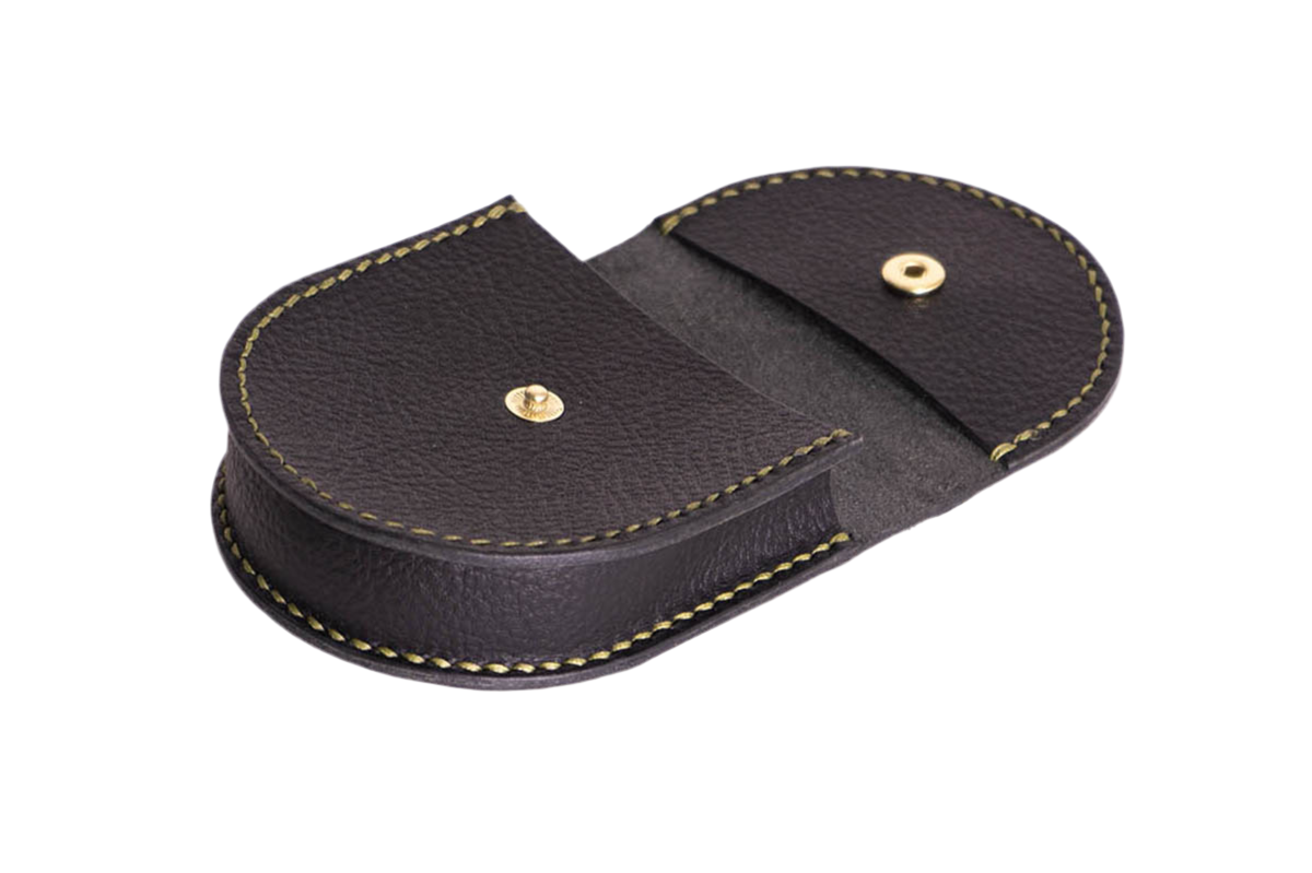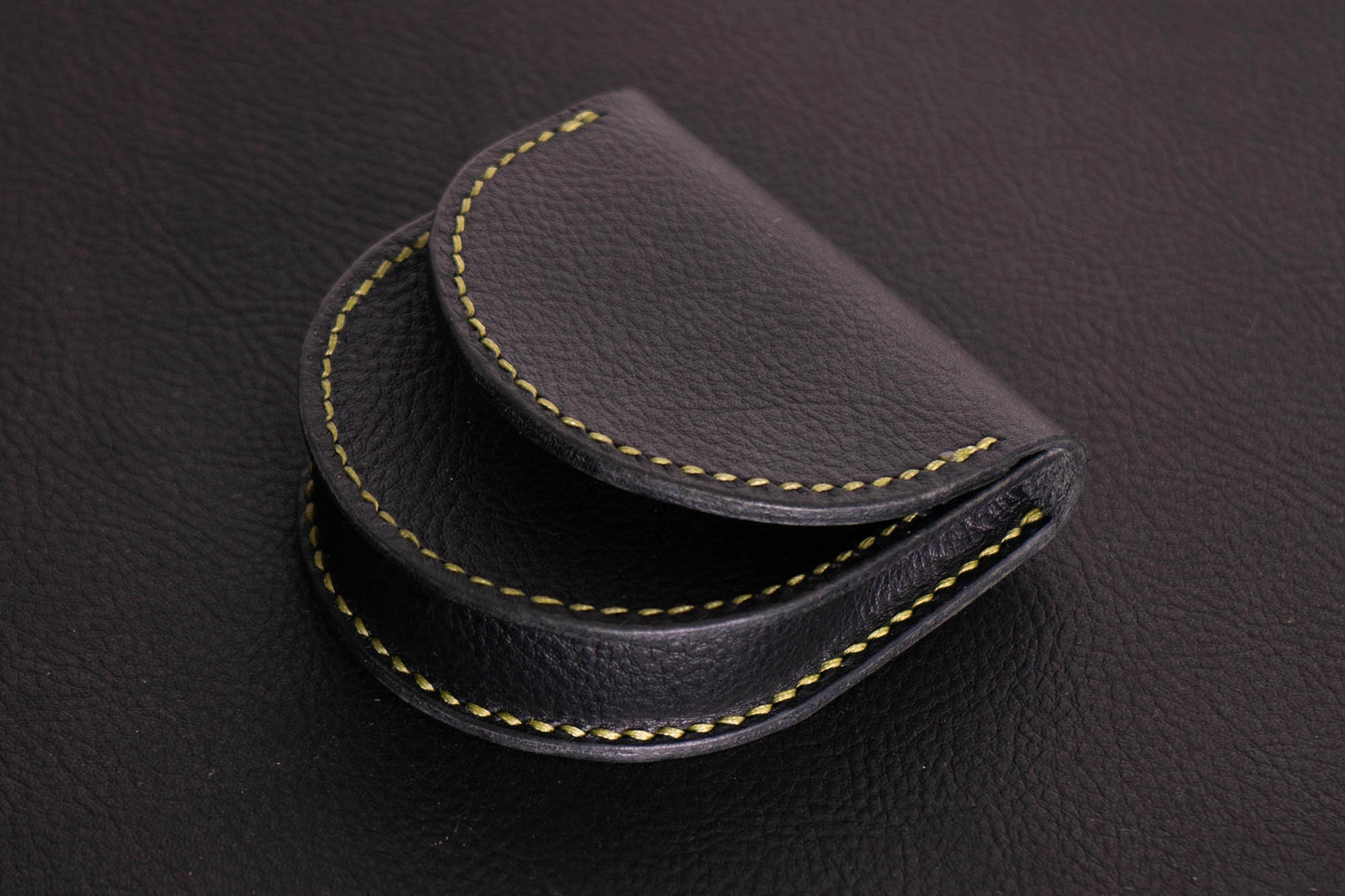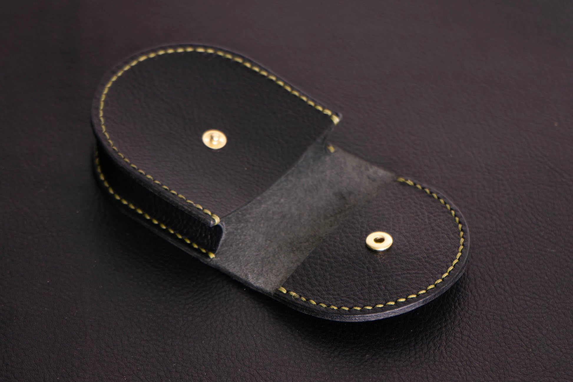 The perfect companion for any bag to hold your headphones, change, chargers, etc. Made with full grain black leather and hand stitched to last for decades.