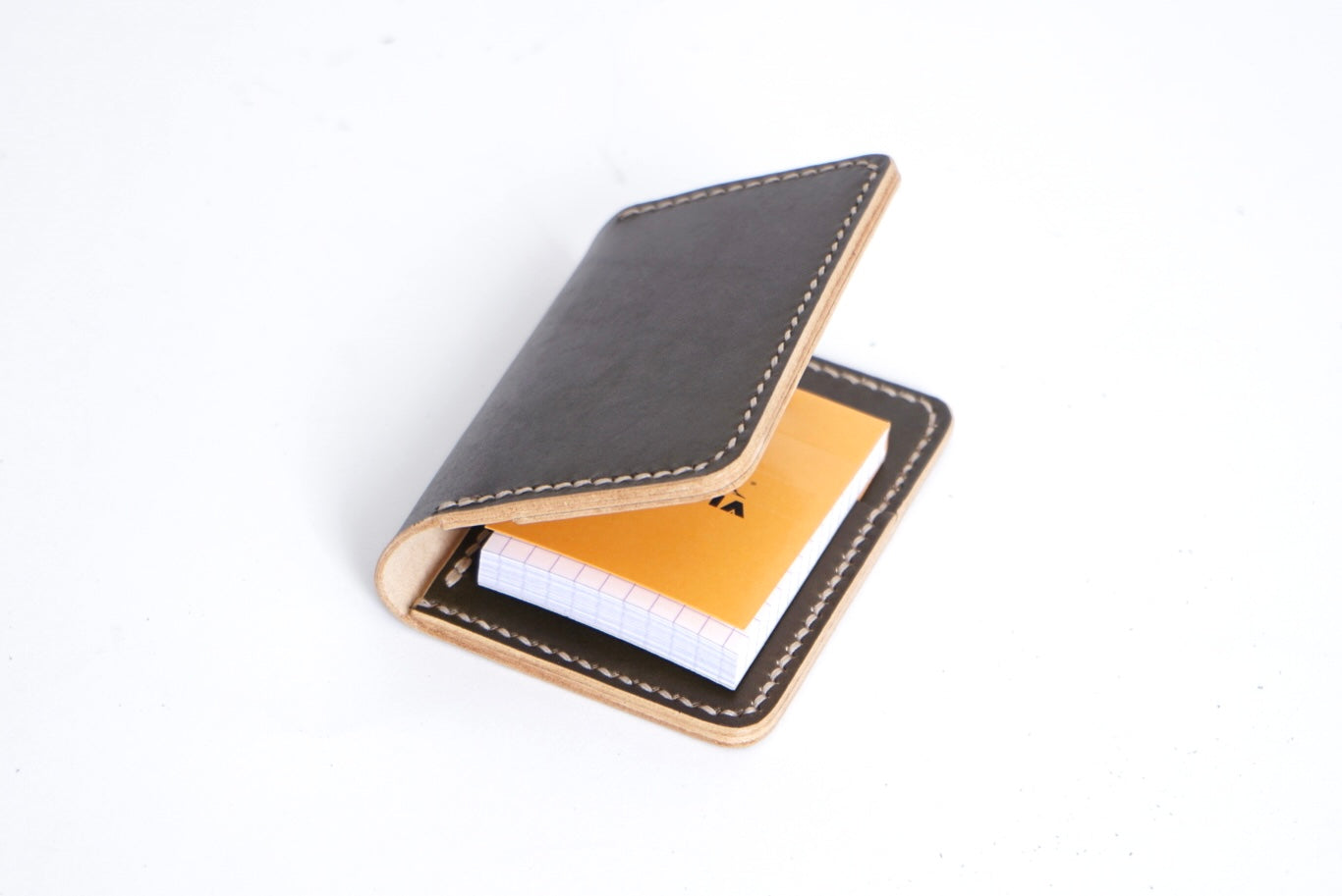 Keep all your thoughts in one place. The Page wallet is a bifold leather wallet with a removable mini Rhodia notepad. You can leave the Rhodia at home for a thinner leather card wallet and extra space for cards.